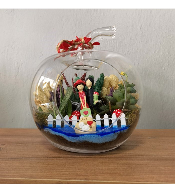 Orta boy elma teraryum, içindeki objeler sevgili,manzara,aile olarak değişiklik gösterebilir.
